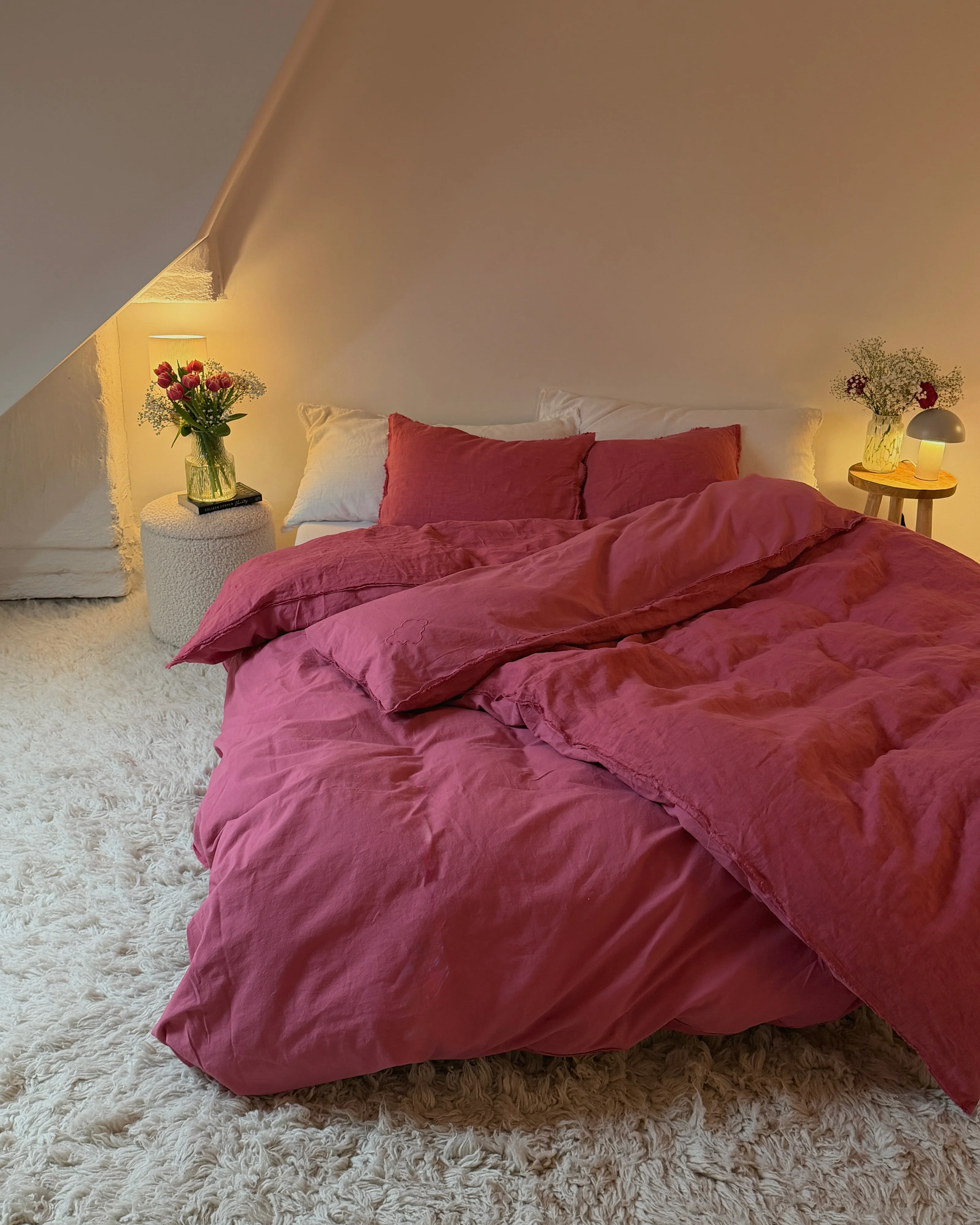 Exklusiva sängkläder med romantisk fransad kant, framtagna i två välvalda material - vilket låter dig välja mellan svalkande, elegant linne under sommarens varma nätter, eller mjuk, värmande bomull att omsluta dig i vintermörkret - för en sömnupplevelse utöver det vanliga.